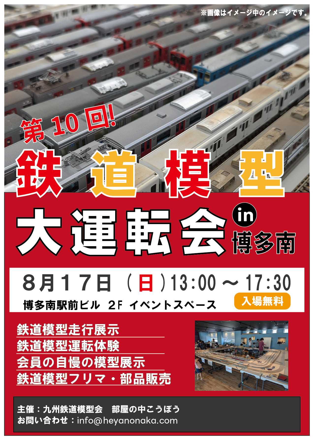 鉄道模型の走行展示や運転体験、鉄道模型部品販売やフリーマーケットの開催を予定しています!